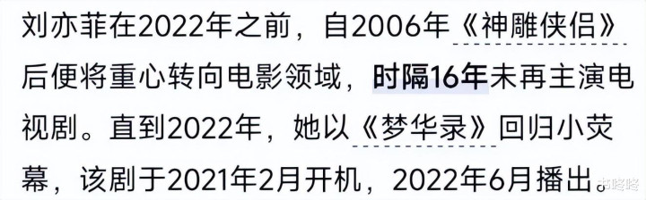 大家可以看她的履历,从2006年到2017年的《南烟斋笔录》开拍(未播),再到《梦华录》(顺利播出),她十几年来一直在大荧幕活跃,还因此备受质疑。