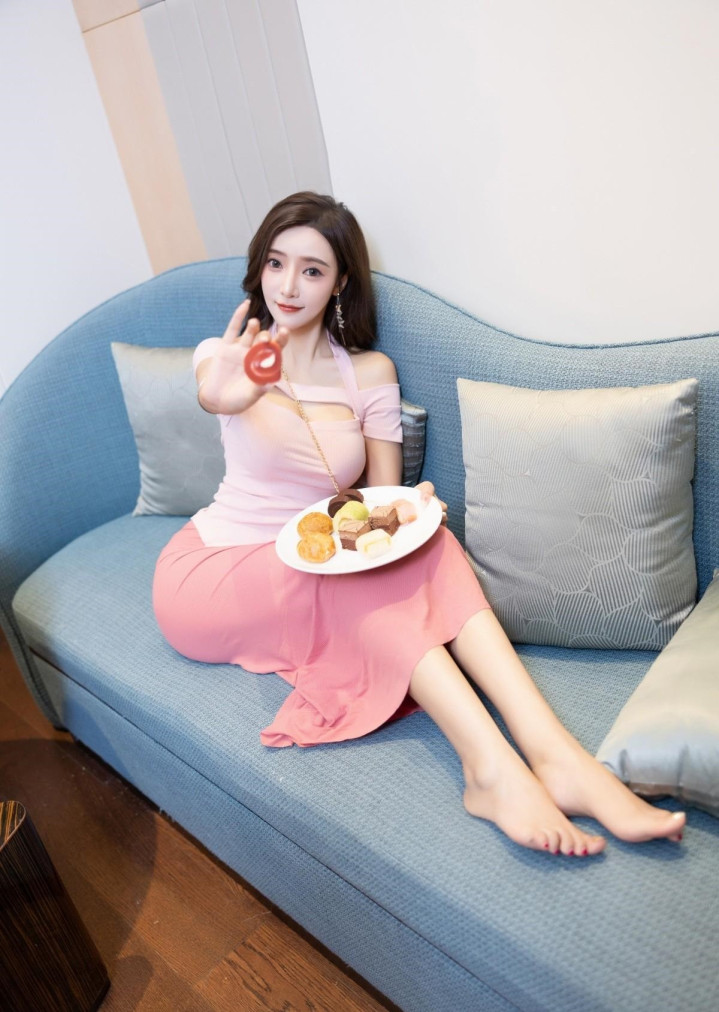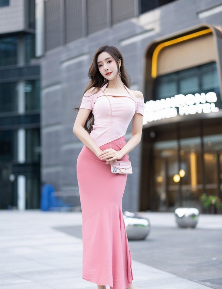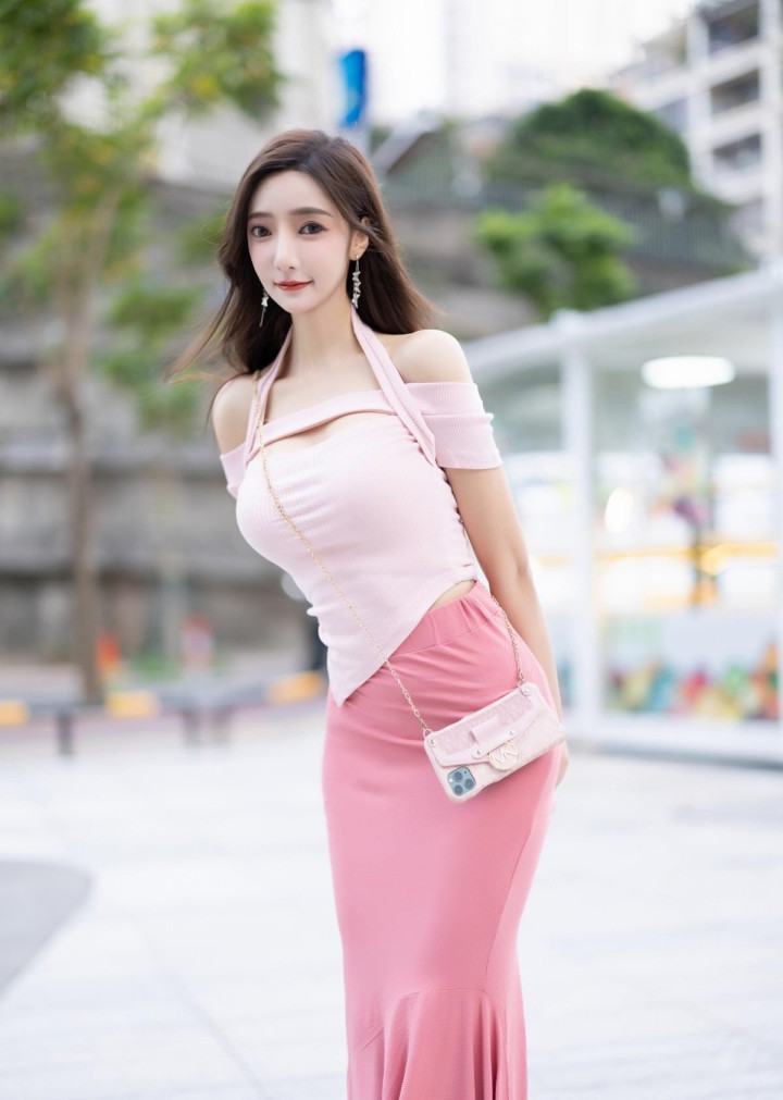 王馨瑶 33 岁身材曼妙,粉色挂脖套装勾勒曲线,甜系穿搭尽显优雅女人味